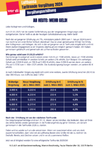 Veröffentlicht am 27. März 202516. März 2026 von zone210Ab heute: Mehr Geld! Liebe Kolleginnen und Kollegen, zum 01.03.2025 hat die zweite Tariferhöhung aus der vergangenen Vergütungsrunde stattgefunden. Daher heißt es ab der heutigen Gehaltsüberweisung: Mehr Geld! Mehr Infos dazu in unserer PDF-Info.