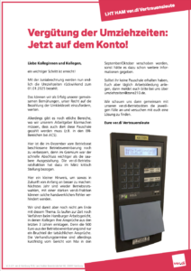 Veröffentlicht am 25. Juni 202516. März 2026 von zone210Auszahlung der Umziehzeiten Liebe Kolleginnen und Kollegen, mit der Juni Abrechnung werden nun die Umziehzeiten ausgezahlt. Damit ist das Thema aber noch nicht beendet. Lest dazu unser Flugblatt.
